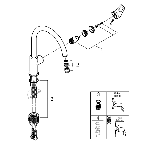 Смеситель для кухни, высокий излив, хром Grohe BauLoop 31368001