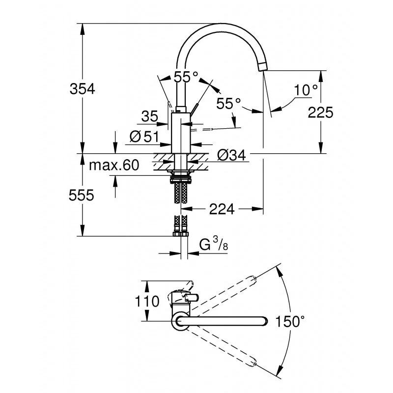 | Комплектация | Grohe Zero Раздельные пути подачи воды-не содержит никеля и свинца ; аэратор |