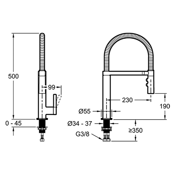 Смеситель для кухни, вытяжной излив, хром Jacob Delafon Spirale E23310-CP