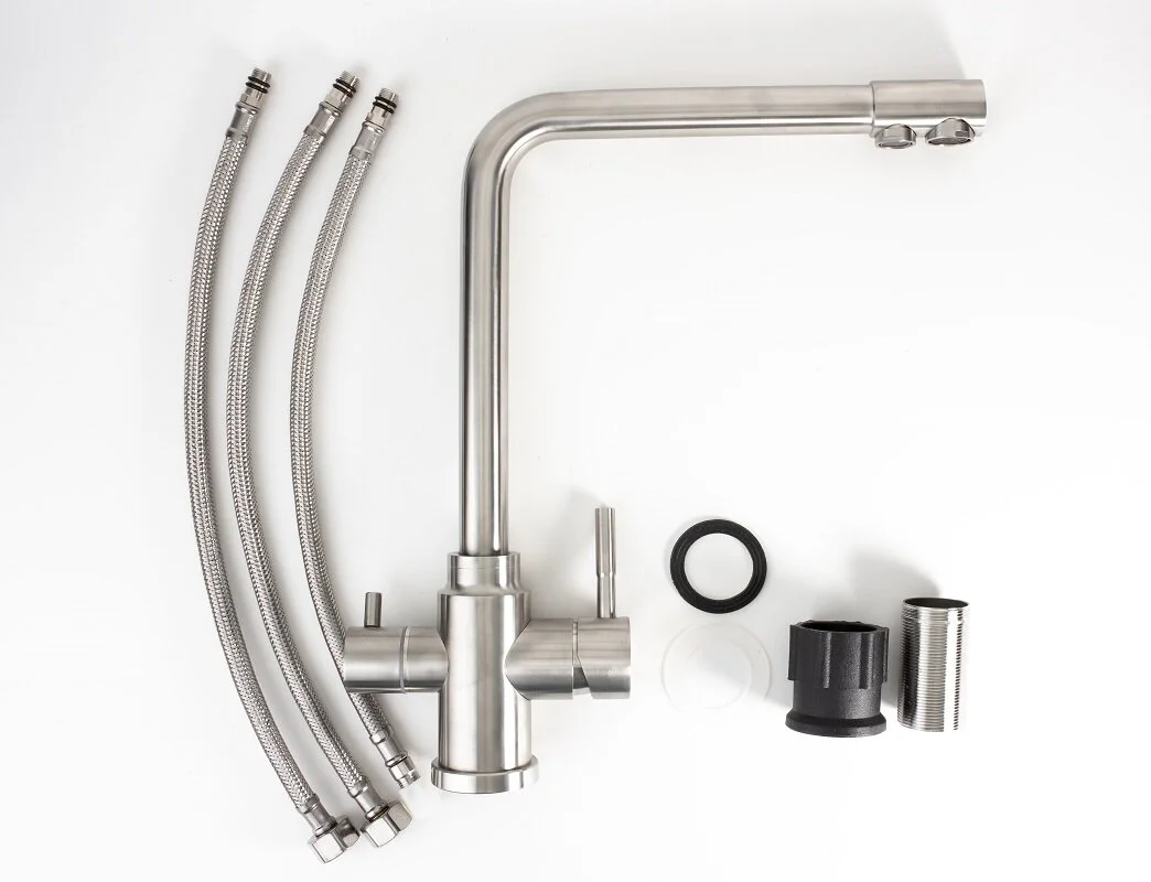 Esko K24 — универсальный кухонный смеситель, предназначенный для подключения к фильтру питьевой воды. Выполнен из пищевой нержавеющей стали SUS 304, что гарантирует экологичность и долговечность. Отдельный канал для фильтрованной воды с индивидуальным аэратором обеспечивает удобство и высокое качество использования.