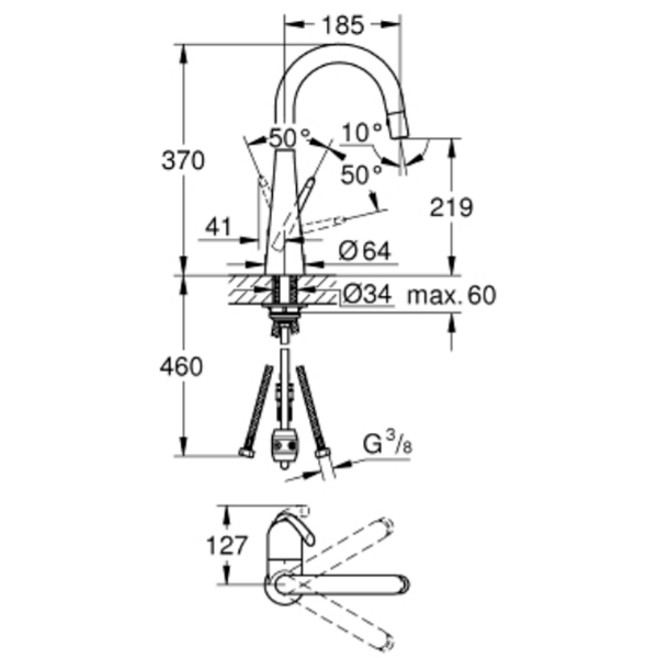 Смеситель для кухни, хром Grohe Zedra 32296000
