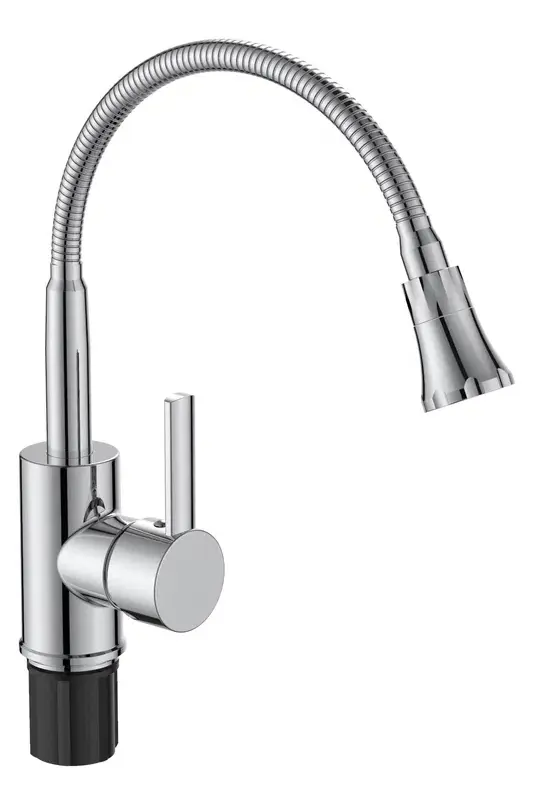 Смеситель для кухни VODA KF519 в хромированном исполнении — это надежное и элегантное решение, которое объединяет современный дизайн и высокую функциональность для вашего комфорта и удобства в кухонной зоне.