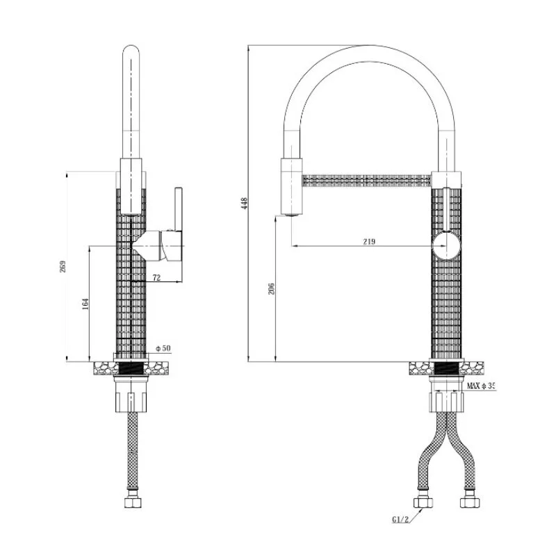 Смеситель Esko K51B для кухонной мойки с гибким изливом в элегантном черном цвете — практичное решение для современной кухни.