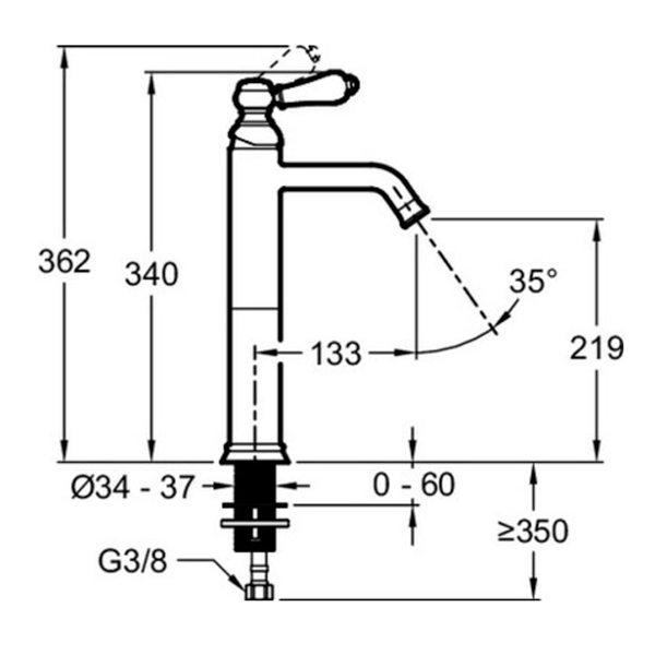 E24361-CP LOUISE Смеситель для раковины высокий излив, без донного клапана, хром
