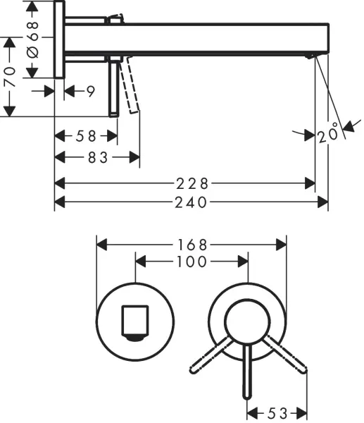 Смеситель для раковины, настенный, хром Hansgrohe Finoris 76050000