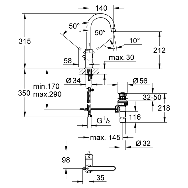 Смеситель для раковины, однорычажный, хром Grohe BauClassic 23095000