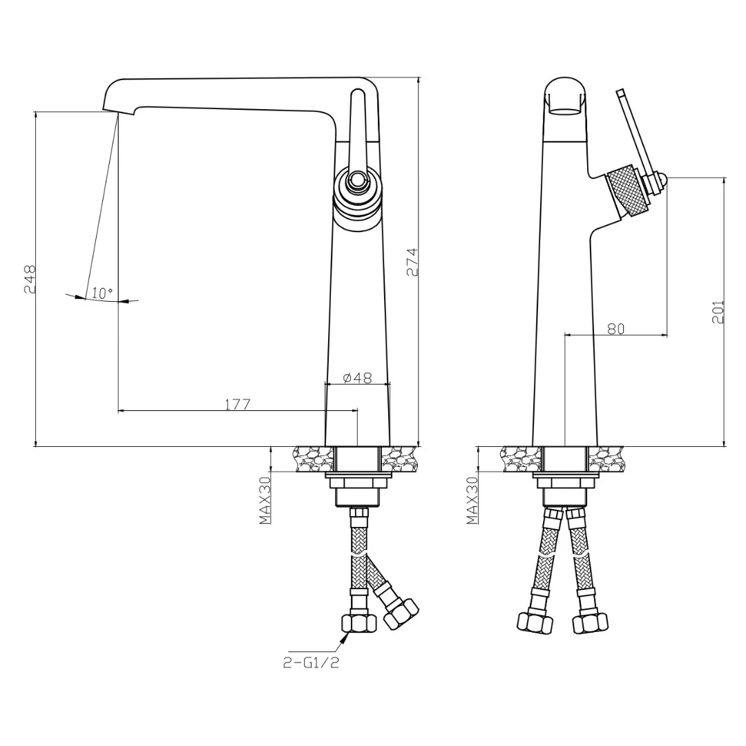 Смеситель для раковины, оружейная сталь ESKO Bangkok Gun metal BG25GM