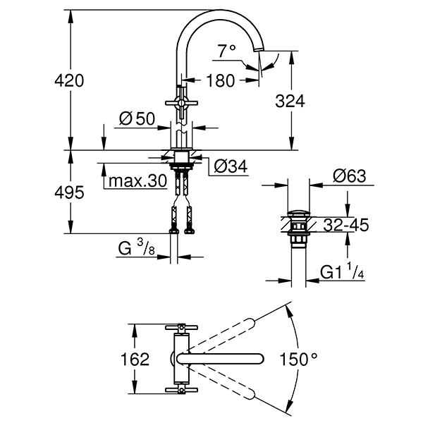 | Комплектация | С аэратором и стопором; с крестобразными рукоятками |