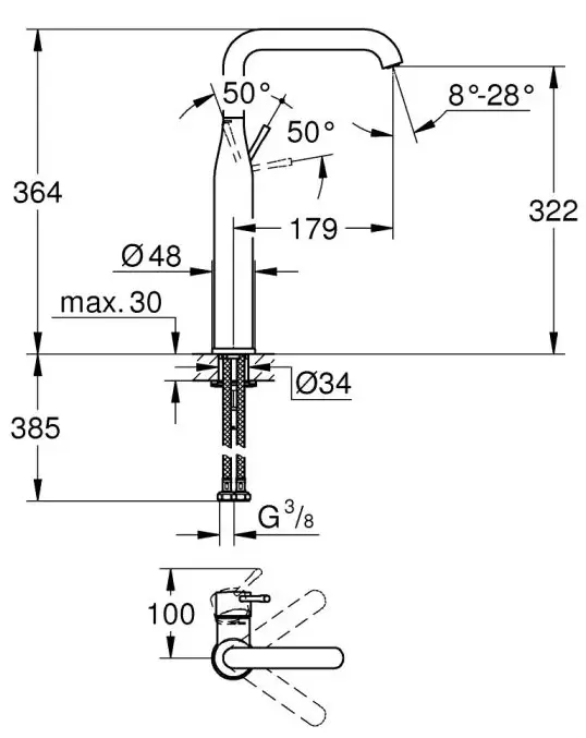 Смеситель для раковины Grohe Essence 24170AL1 размером XL в матовом темном графите сочетает элегантный дизайн и отличную функциональность. Однорычажное управление и современное покрытие делают его отличным выбором для вашей ванной комнаты.