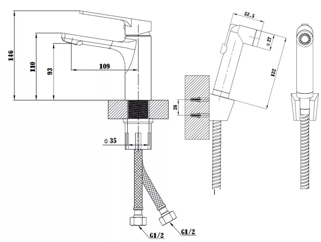 | Комплектация | пьедестал; крепление "FastFix"; гибкая подводка 40 см.; гигиеническая лейка с держателем (ABS пластик); шланг душевой 1;2 м |