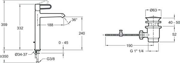 Смеситель для раковины с донным клапаном, черный Jacob Delafon Odeon Rive Gauche E21030-BL-BL