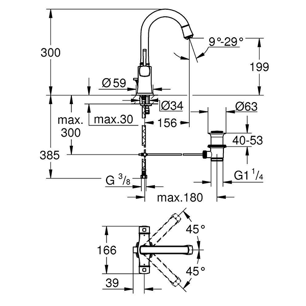 | Комплектация | Регулируемый аэратор; поворотный излив |