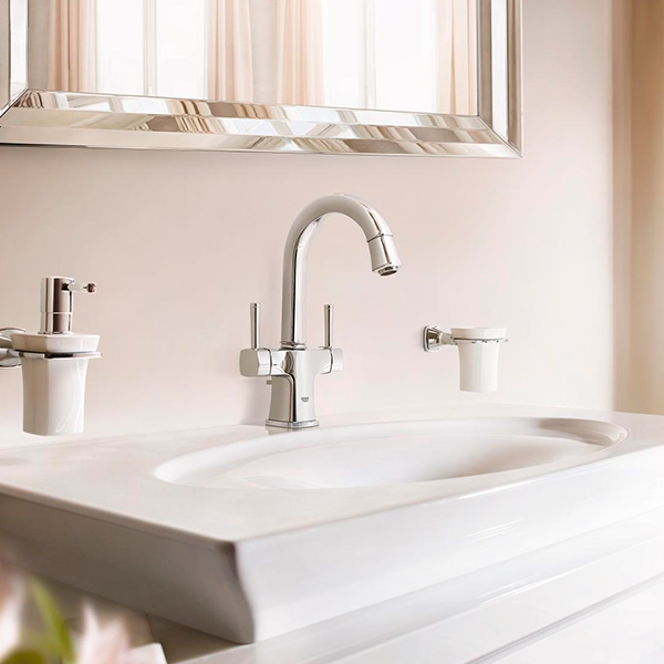 21107000 Grandera Смеситель для раковины, с двумя рукоятками L-Size, хром