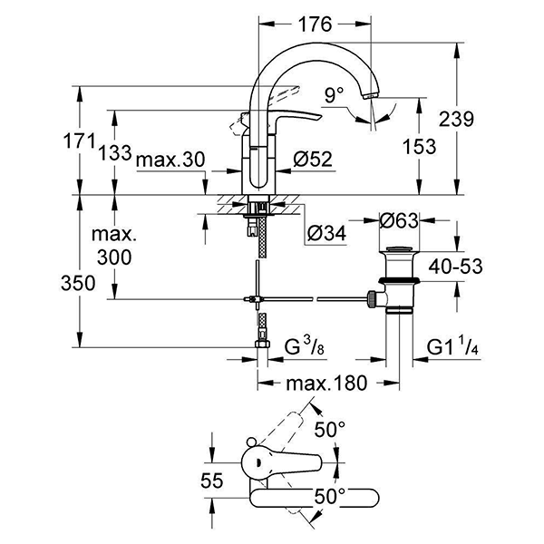 32444001 Eurostyle Смеситель однорычажный для раковины 1/2″ L-Size