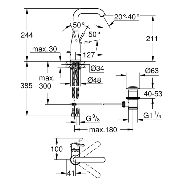Смеситель для раковины с донным клапаном, размер L, высокий излив, суперсталь Grohe Essence 32628DC1