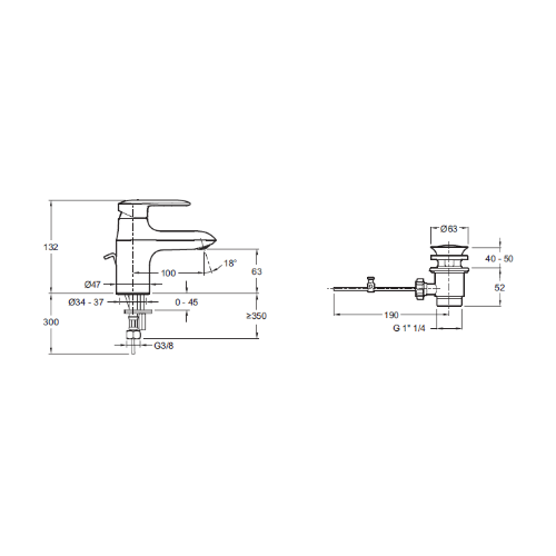 E99980-CP KUMIN Смеситель для раковины с изливом, малый, хром