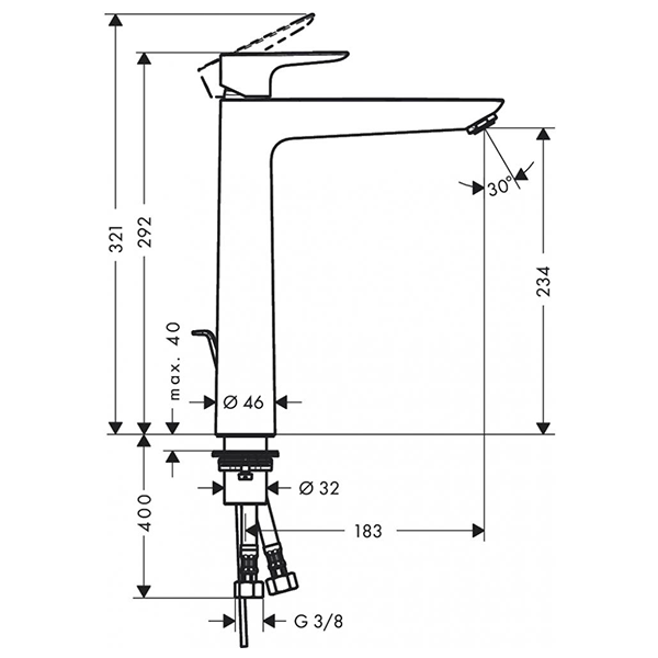 HG71716000 Talis E Смеситель для раковины с высоким изливом и сливным гарнитуром, хром