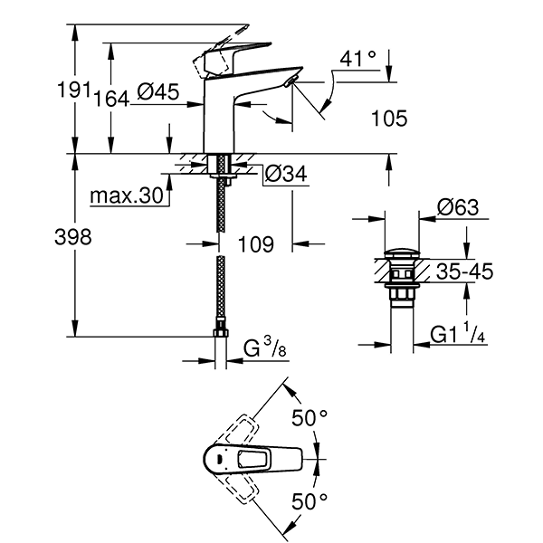 Смеситель для раковины с нажимным донным клапаном, размер M, хром Grohe BauLoop 23886001