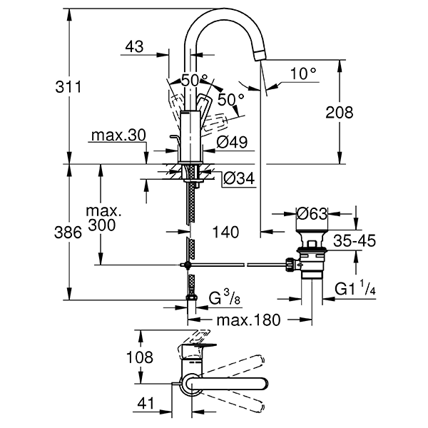 | Комплектация | Гибкая подводка; поверхность GROHE StarLight; система быстрого монтажа |