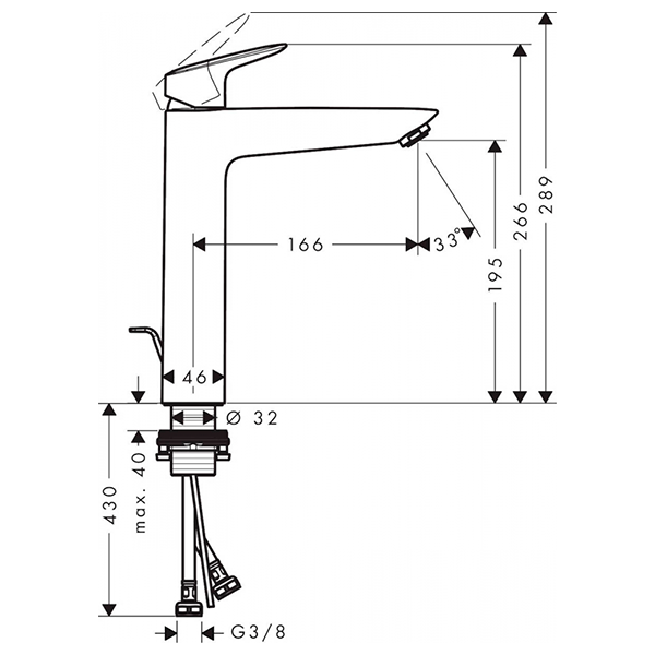 HG71090000 Logis Смеситель для раковины 190, однорычажный, с донным клапаном