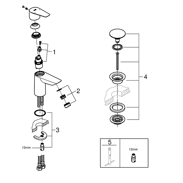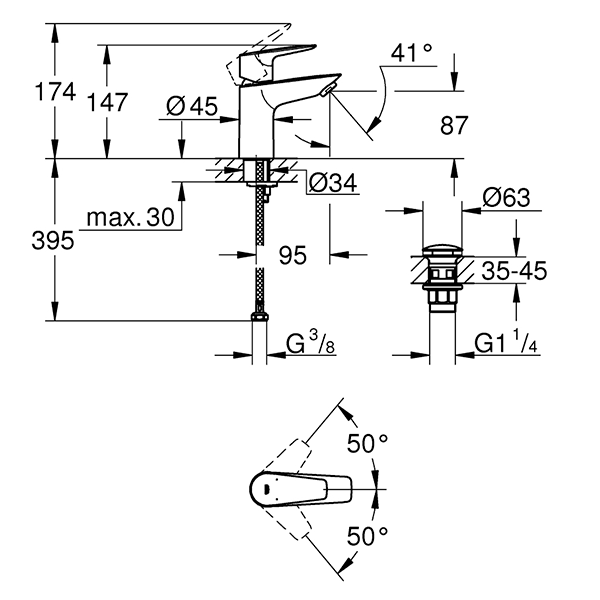| Комплектация | Аэратор; гибкая подводка; поверхность GROHE StarLight; система быстрого монтажа |