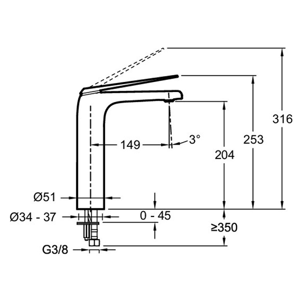E97347-ND-CP AVID высокий смеситель для умывальника без дк, хром