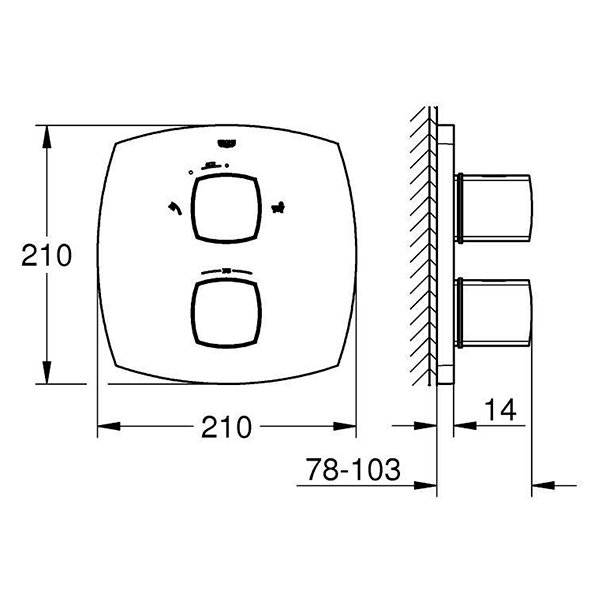 19948IG0 Grandera Термостат для ванны со встроенным переключателем на 2 положения, без встраиваемого механизма, хром/золото