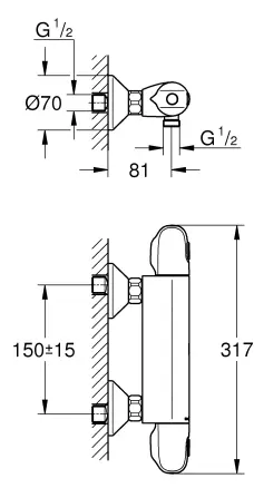Смеситель для душа Grohe Grohtherm 1000 с термостатом выполнен в хромированном цвете и изготовлен из латуни, что обеспечивает ему долговечность и устойчивость к коррозии. Покрытие Grohe Long-Life Finish гарантирует стойкость и сохранение внешнего вида на протяжении длительного времени.