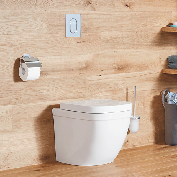 Унитаз Grohe Euro Ceramic 39339000: элегантный альпин-белый дизайн и безободковая конструкция для легкого ухода и современного стиля в вашей ванной комнате.