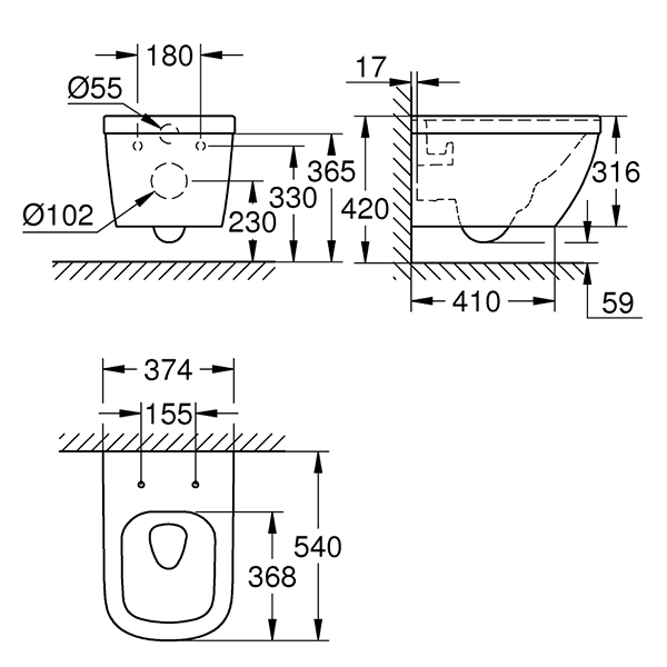 Унитаз подвесной, безободковый, альпин-белый Grohe Euro Ceramic 39328000