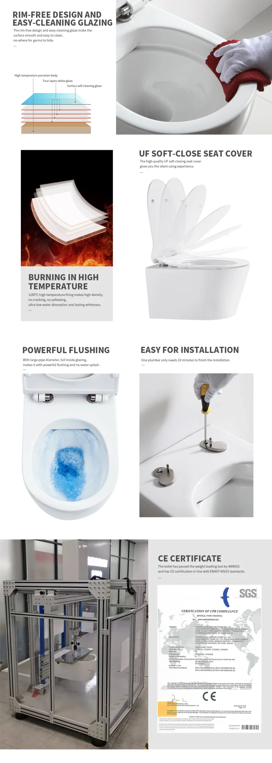 Унитаз подвесной с крышкой-сиденьем с микролифтом, белый SSWW CT2076— это современное решение для ванных комнат, сочетающее передовые технологии гигиены, удобство ухода и премиальный внешний вид. Выполненный из высококачественной керамики, прошедшей обжиг при температуре 1280 °C, он сохраняет сияющую белизну, устойчив к трещинам и отличается сверхнизким водопоглощением. Благодаря технологии rim-free (безободковая чаша), унитаз гарантирует максимальную гигиену: гладкая поверхность без скрытых полостей и специальное 4-слойное легкоочищающее глазурование предотвращают накопление загрязнений и упрощают уход. Установленная крышка-сиденье из дюропласта (UF) с микролифтом обеспечивает плавное и бесшумное опускание. Увеличенный диаметр сливного канала с полной внутренней глазурью обеспечивает мощный, но экономичный слив без разбрызгивания. Объём смыва 4/6 литров позволяет выбрать оптимальный режим расхода воды.