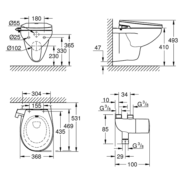 | Комплектация | 2 специальных форсунки (1 — подмывание сзади; 1 — дамский душ); промыв форсунок чистой водой до и после процедуры; гибкие шланги 3/8" для бачка скрытого монтажа |