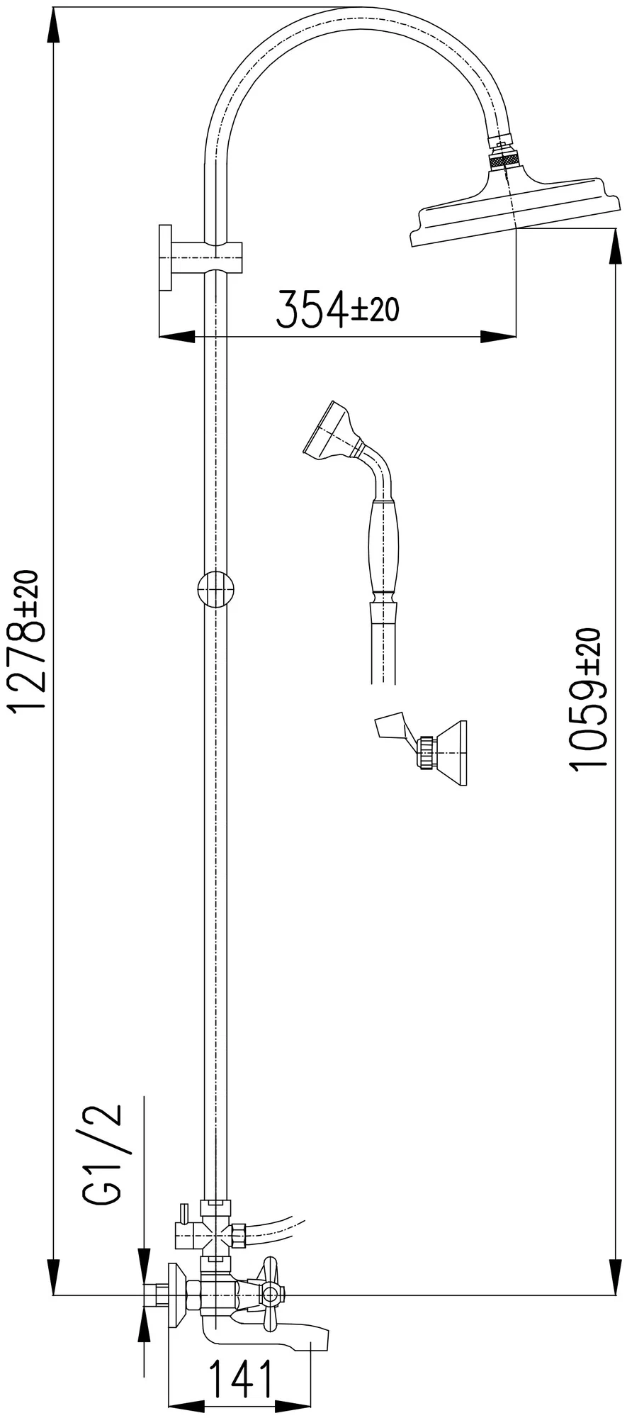 | Комплектация | верхний душ; душевая стойка; лейка; смеситель; шланг |