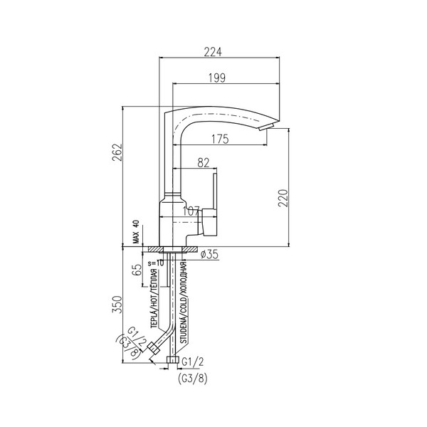ZA007.5/7 ZAMBEZI Смеситель кухонный c поворотным изливом 225mm